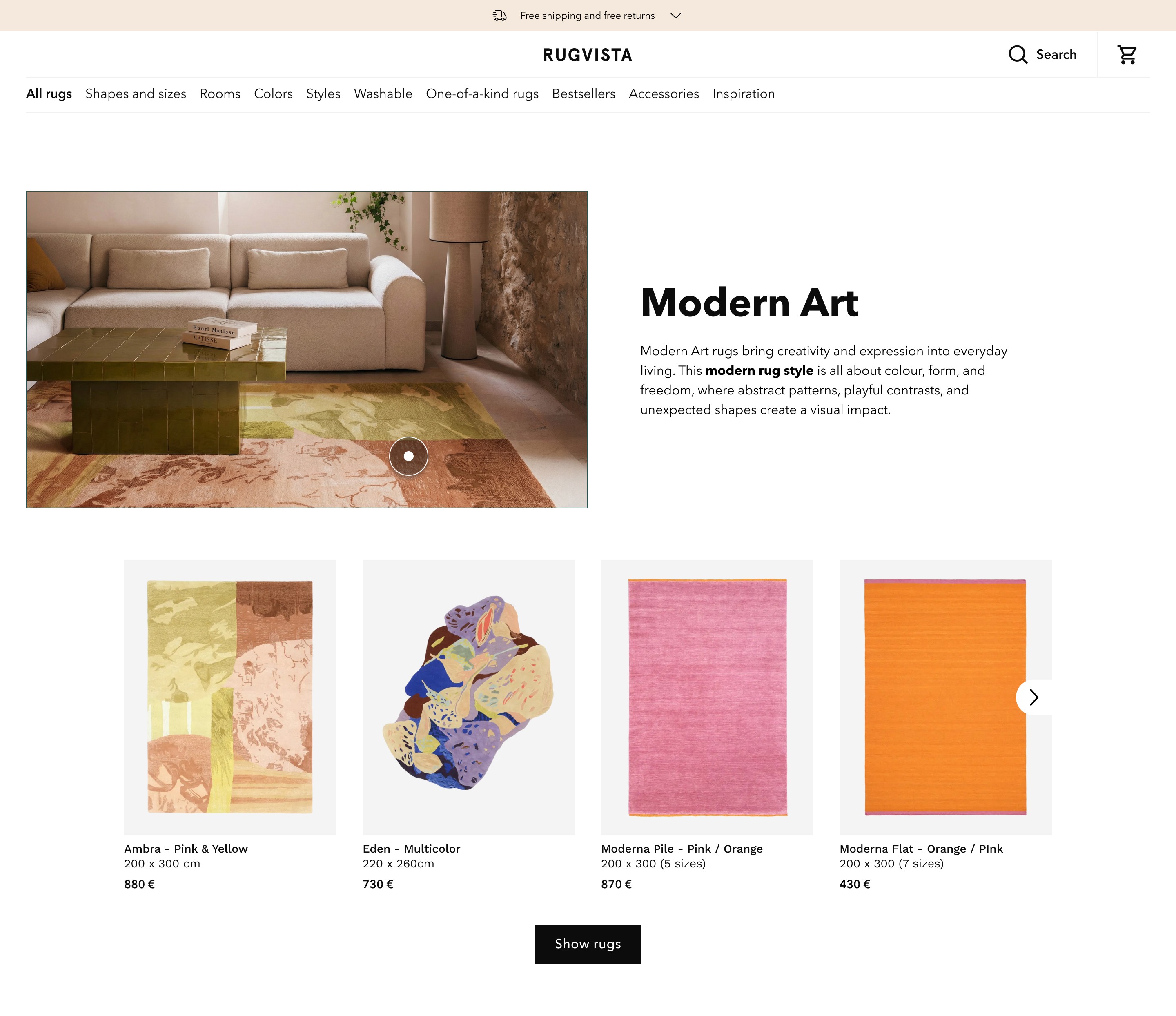 Highlighted one key rug with a short, focused story to create depth